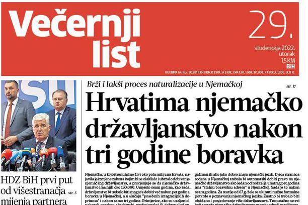 U Večernjem listu BiH u tiskanom izdanju u utorak, 29. studenoga 2022. godine pročitajte: