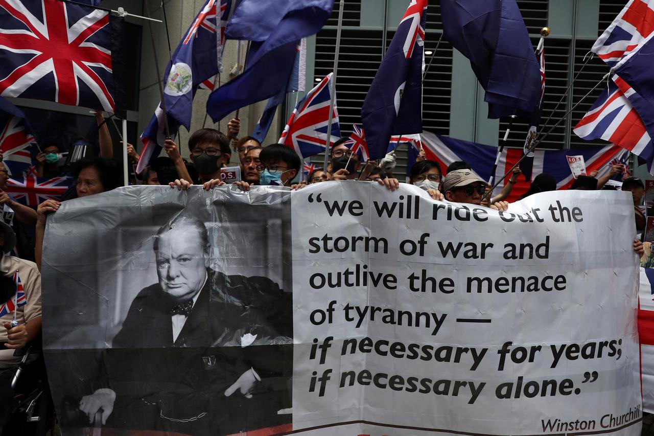 POZIV U POMOĆ Zastava i himna Velike Britanije oružje su upornih prosvjednika u Hong Kongu - Izdržat ćemo oluju rata i preživjeti prijetnju tiranije – ako je potrebno godinama, ako je potrebno sami, citiraju Hongkonžani Winstona Churchilla