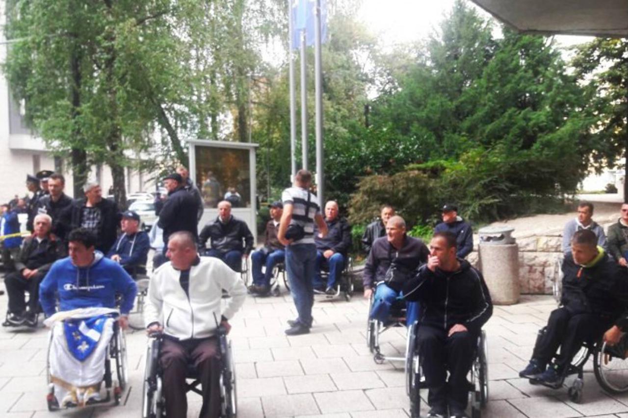 usporedo sa sjednicom Mirni prosvjedi invalida ispred zgrade Parlamenta FBiH Prosvjednici traže povećanje mjesečnih naknada za tuđu njegu i pomoć.