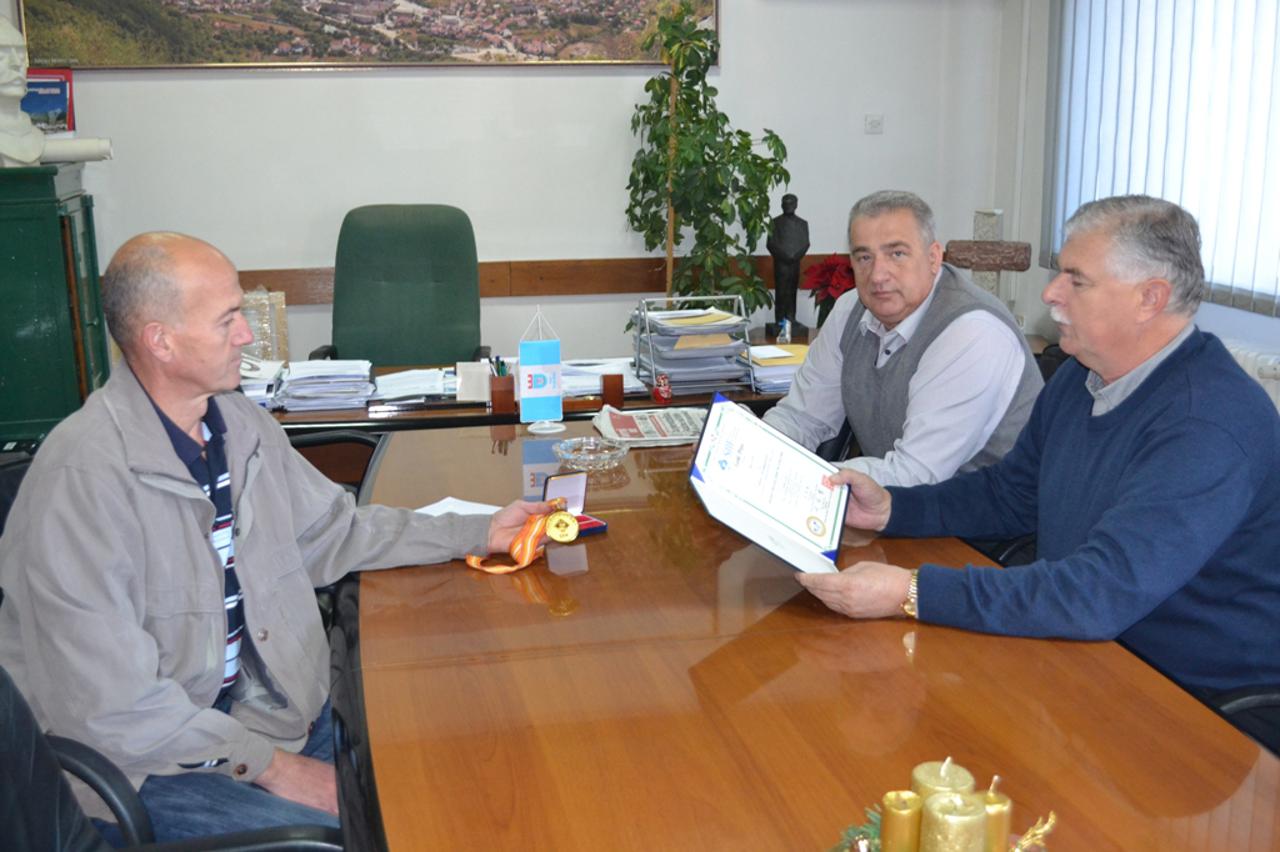 Široki Brijeg Gradonačelnik Kraljević i predsjednik GV Topić primili inovatora Zorana Kutlu Kutle je na svjetskoj izložbi inovacija u Seulu osvojio zlatnu medalju za napravu koja služi za izvlačenje na površinu potopljenih plovila