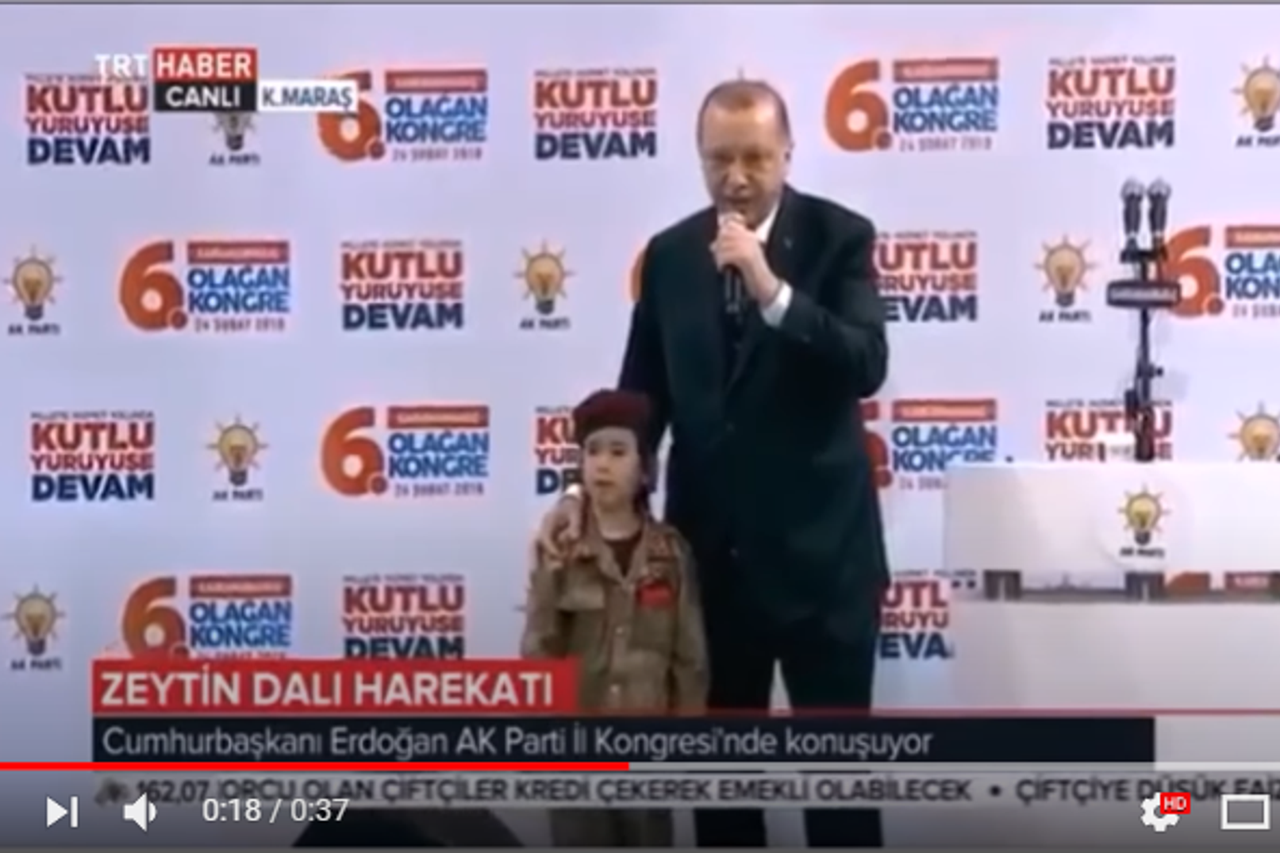 Video sadržaj TURSKA Erdogan šokirao izjavom, a onda uplakanu djevojčicu poljubio u obraz Nekoliko turske djece u vojnim uniformama salutiralo je turskom predsjedniku tijekom govora u parlamentu prošli tjedan