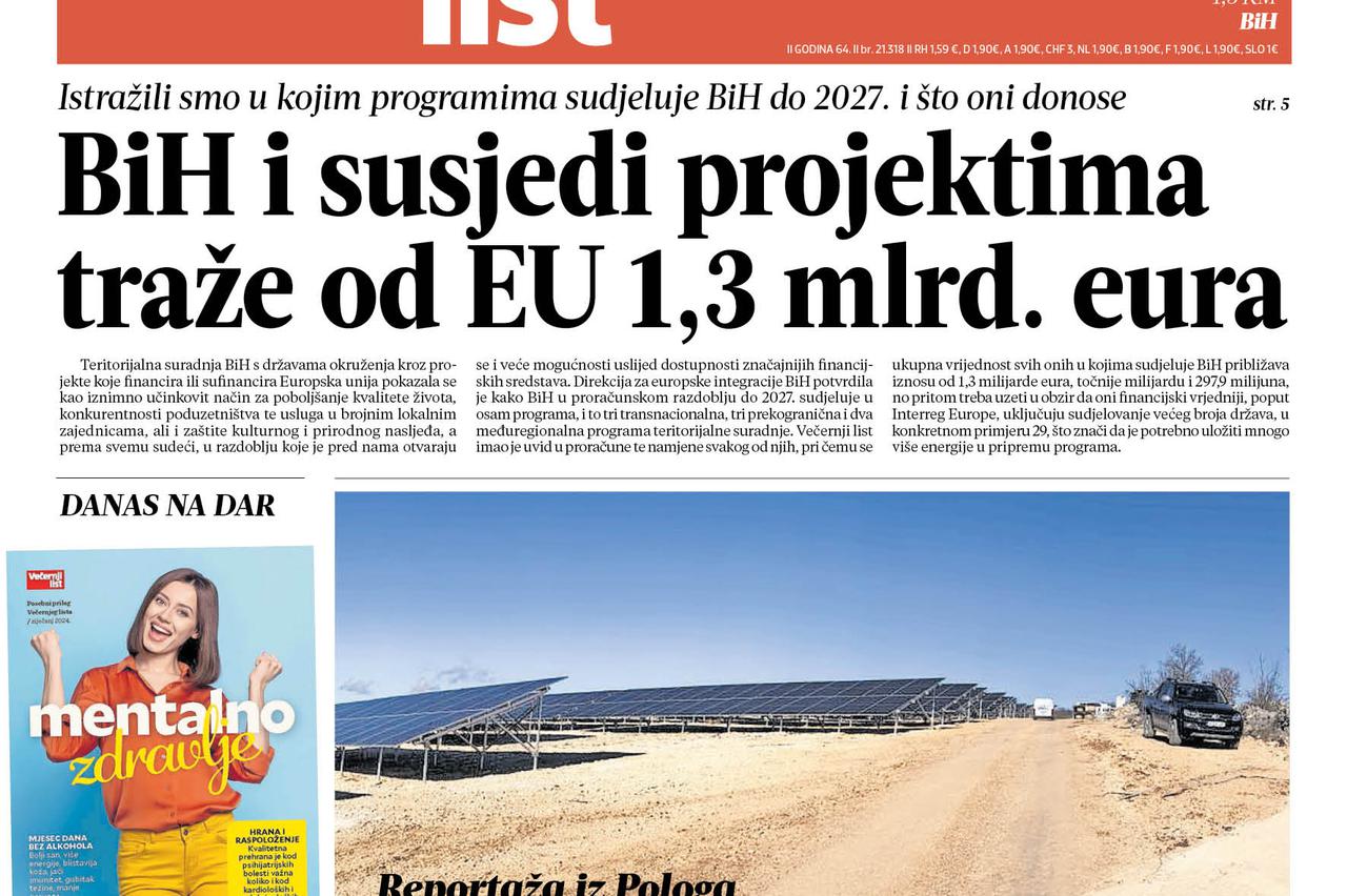 večernjak, 15. siječnja Pročitajte što vam Večernji list BiH donosi ovog ponedjeljka U Večernjem listu BiH u tiskanom izdanju u ponedjeljak, 15. siječnja 2024. godine pročitajte: