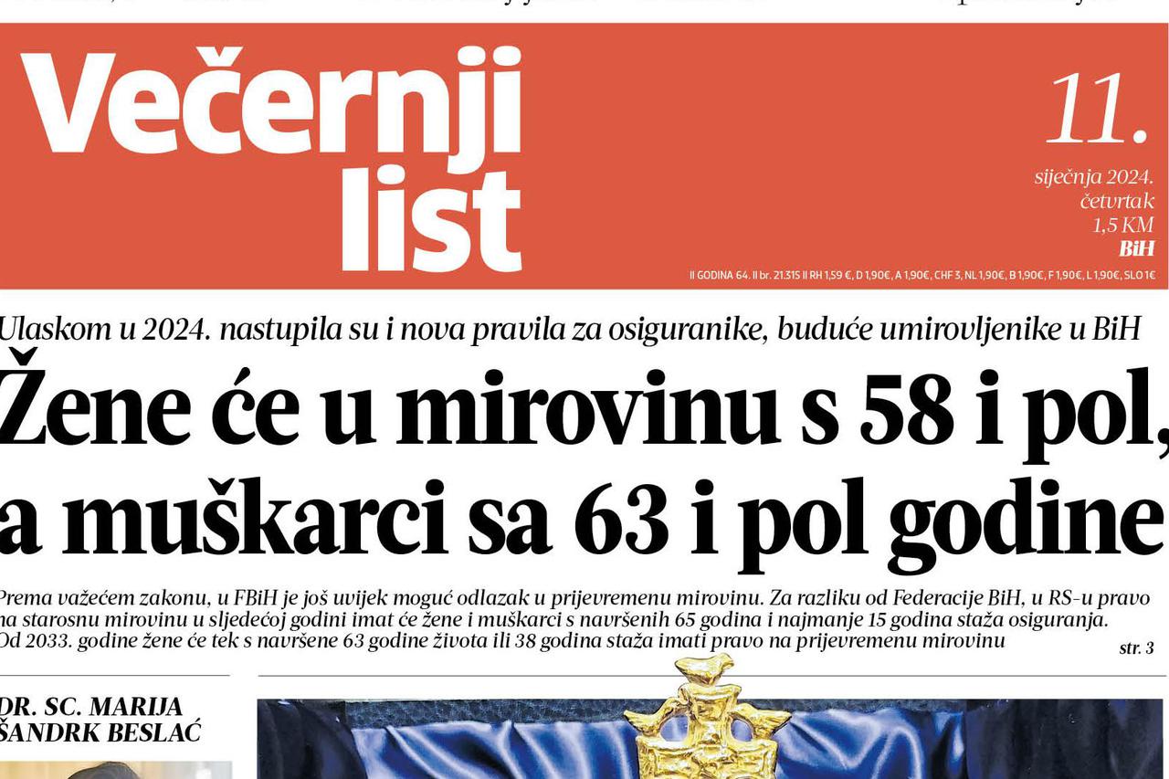 večernjak, 11. siječnja Pročitajte što vam ovoga četvrtka donosi Večernji list BiH U Večernjem listu BiH u tiskanom izdanju u četvrtak, 11. siječnja 2024. godine možete pročitati...
