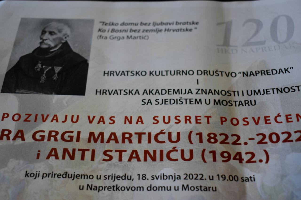 U organizaciji Hrvatskog kulturnog društva Napredak i Hrvatske akademije znanosti i umjetnosti U Mostaru susret posvećen fra Grgi Martiću i Anti Staniću