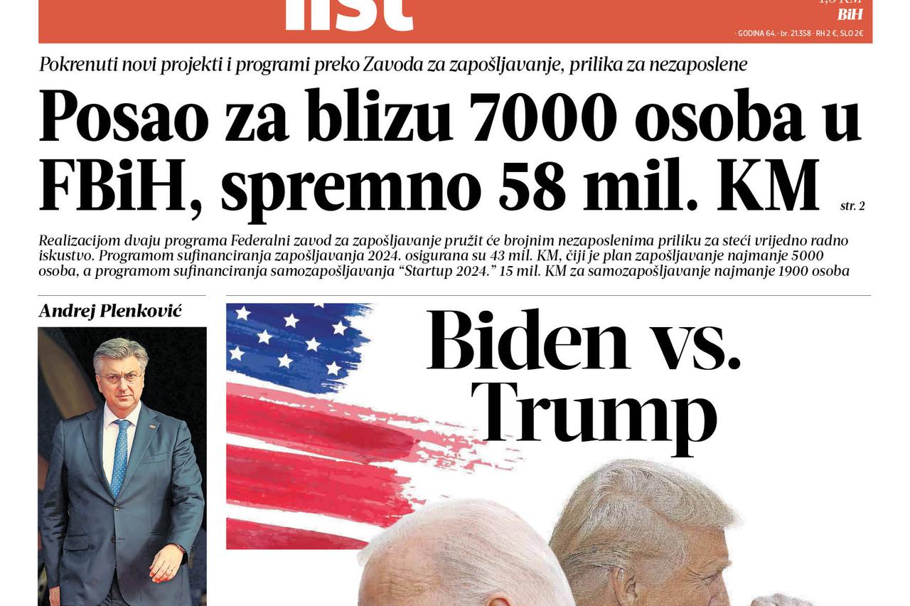 Pročitajte što vam ovog četvrtka donosi Večernji list BiH