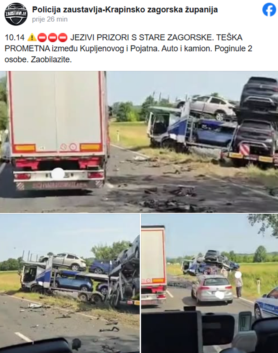 Na Facebook stranici Policija zaustavlja - Krapinsko zagorska županija objaavljene su fotografije strašne nesreće. Dodali su da je stigao i helikopter