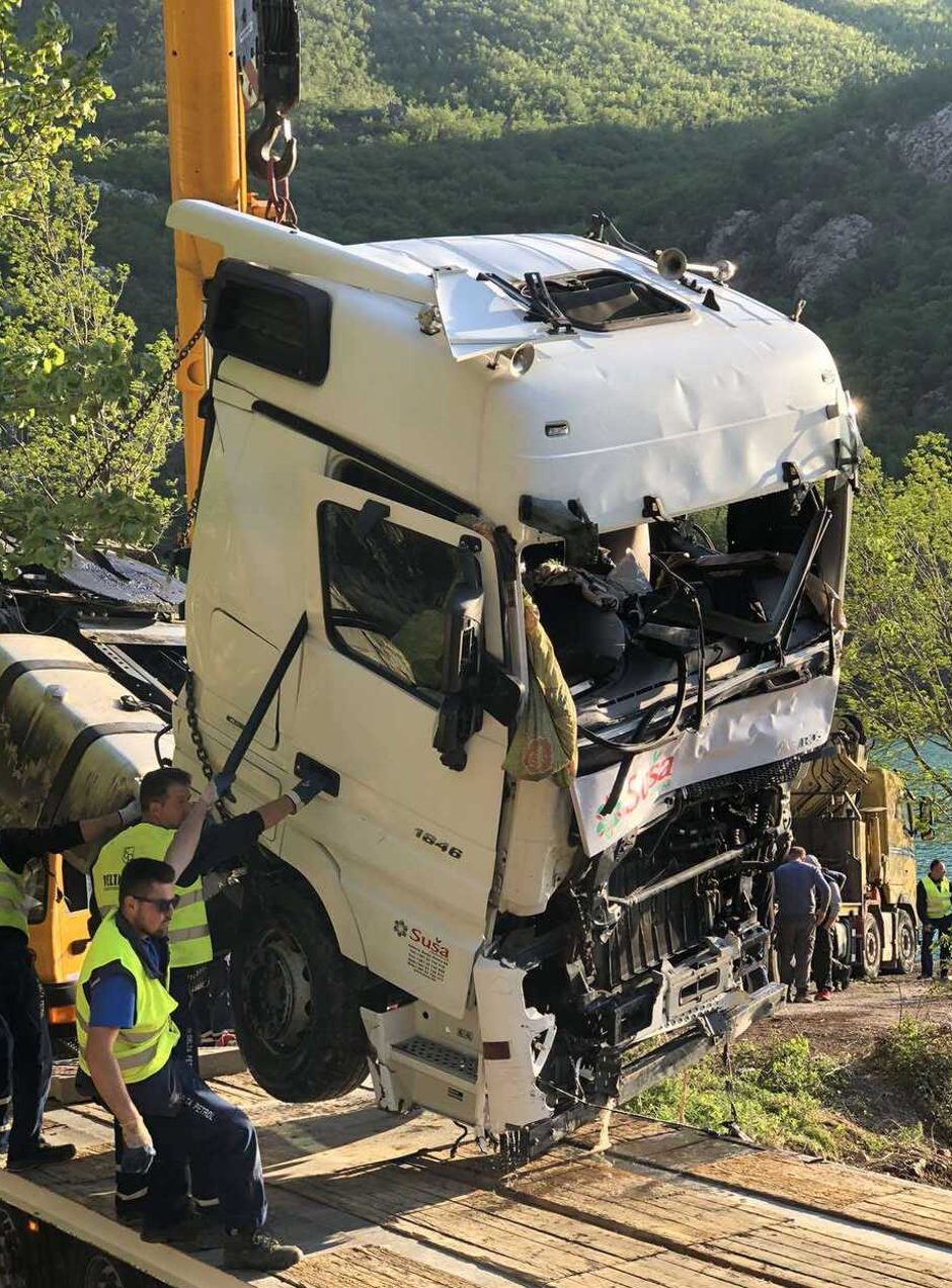 Cisterna u kojoj je jučer poginuo vozač iz Visokog izvučena je danas iz jezera kod Mostara. Radi se o kamionu kompanije Suša Commerce iz Visokog.