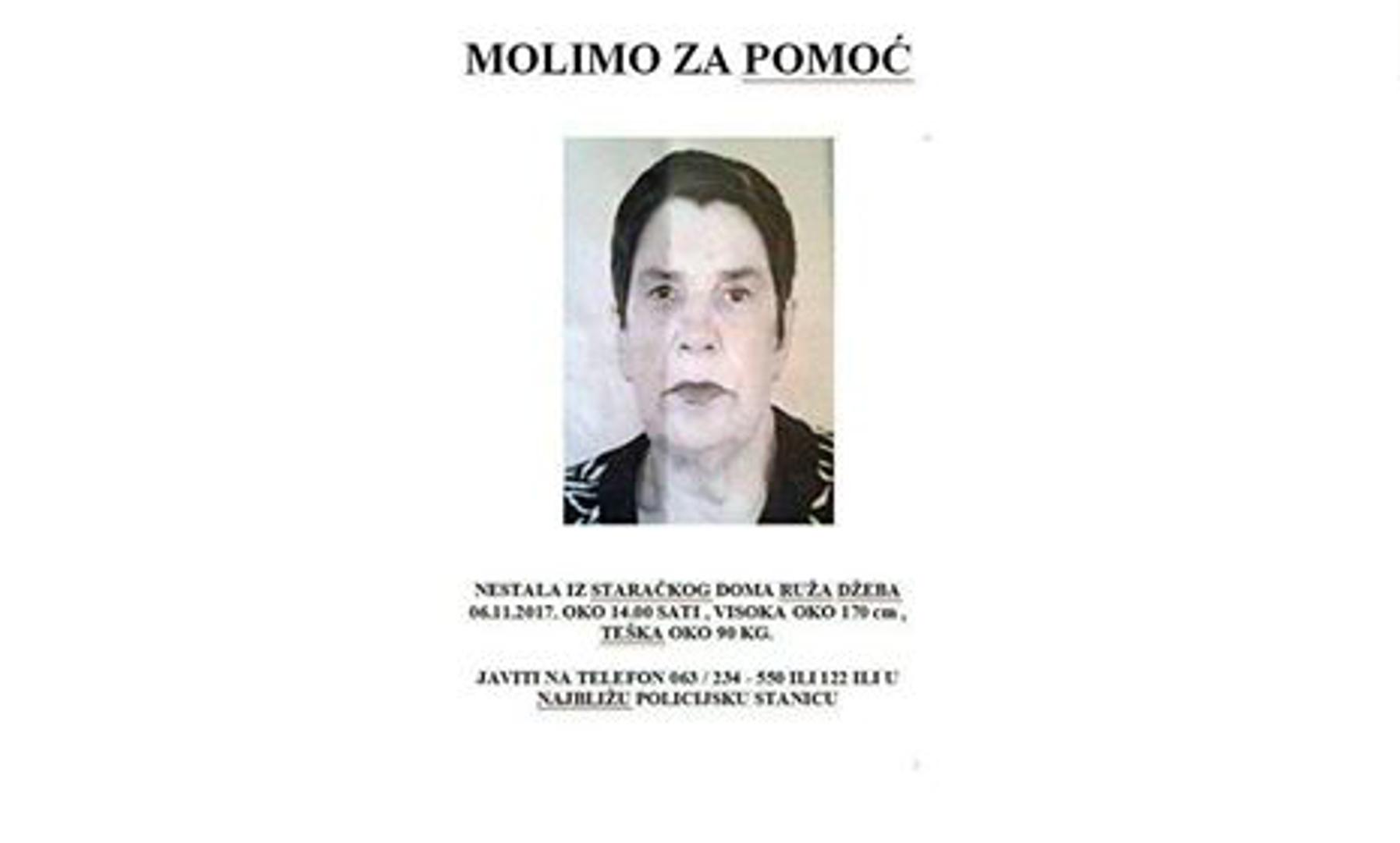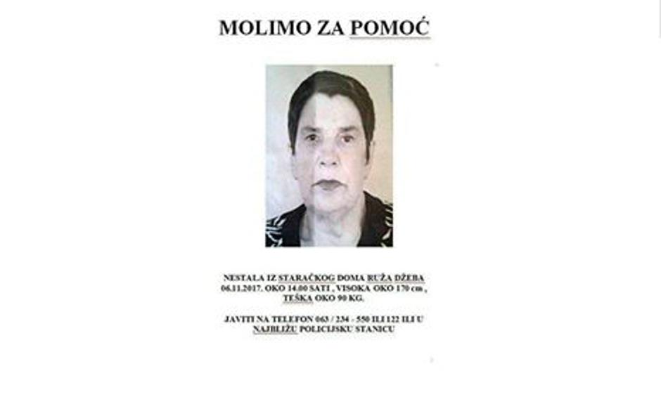 ''Ruža je nestala iz staračkog doma 6. studenog oko 14 sati. Visoka je oko 170cm, teška oko 90- kilograma'', rekla je obitelj koja moli za pomoć.