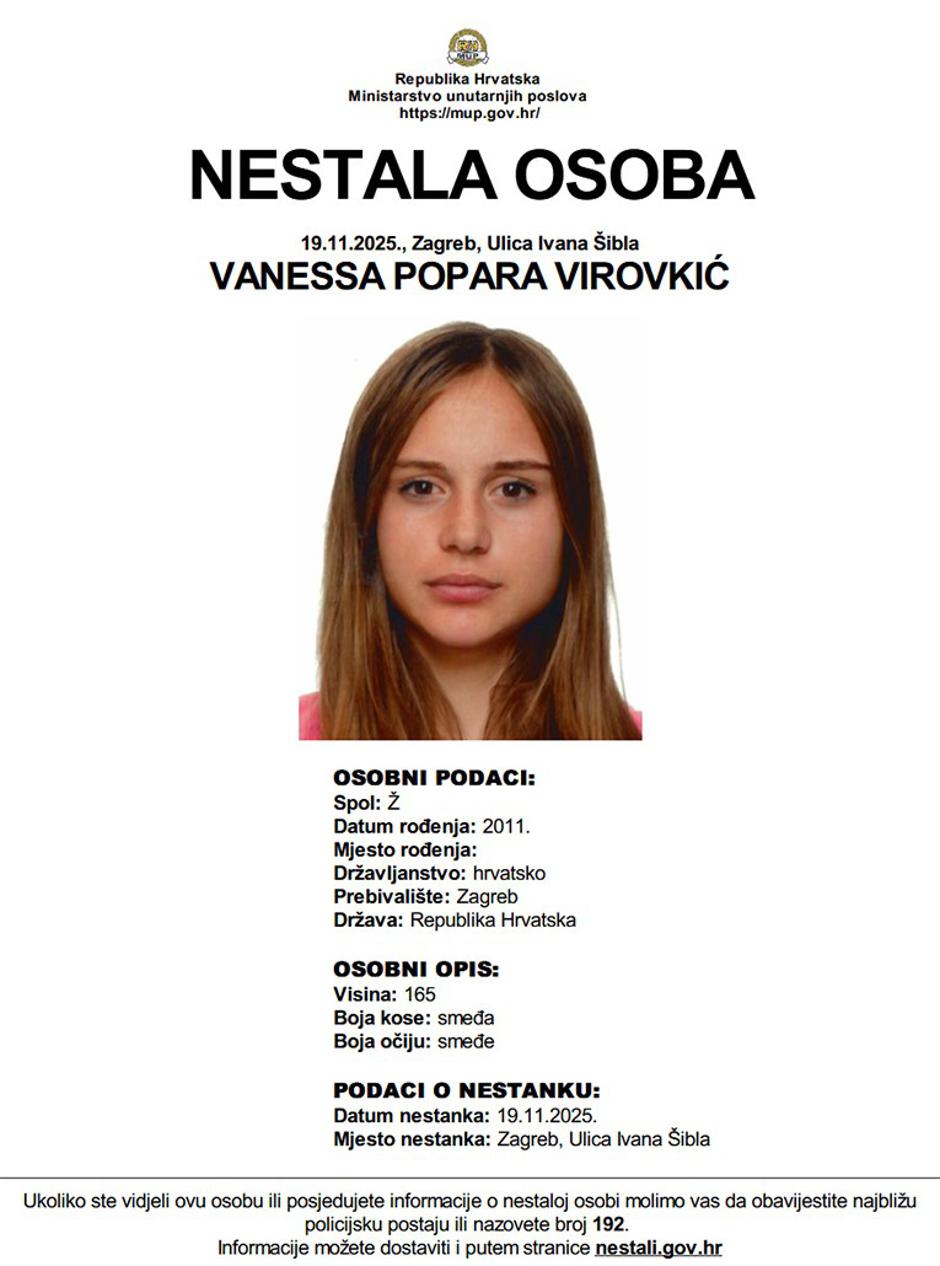 Na stranici nestali.hr objavljeno je kako je tinejdžerica nestala jučer, a zadnji je put viđena u Ulici Ivana Šibla.