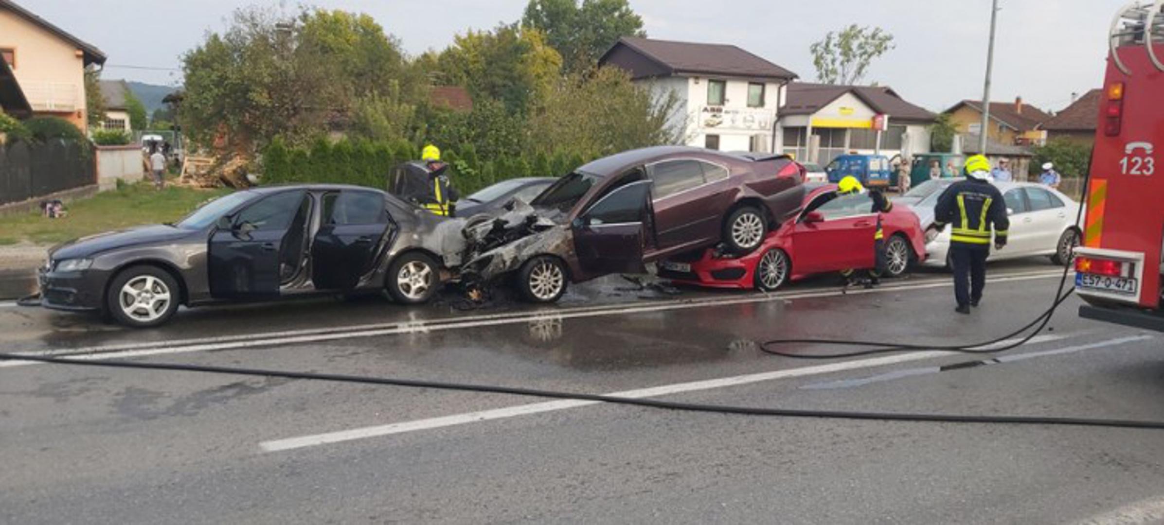 Sudarila se četiri automobila u Banjoj Luci, jedan se zapalio
