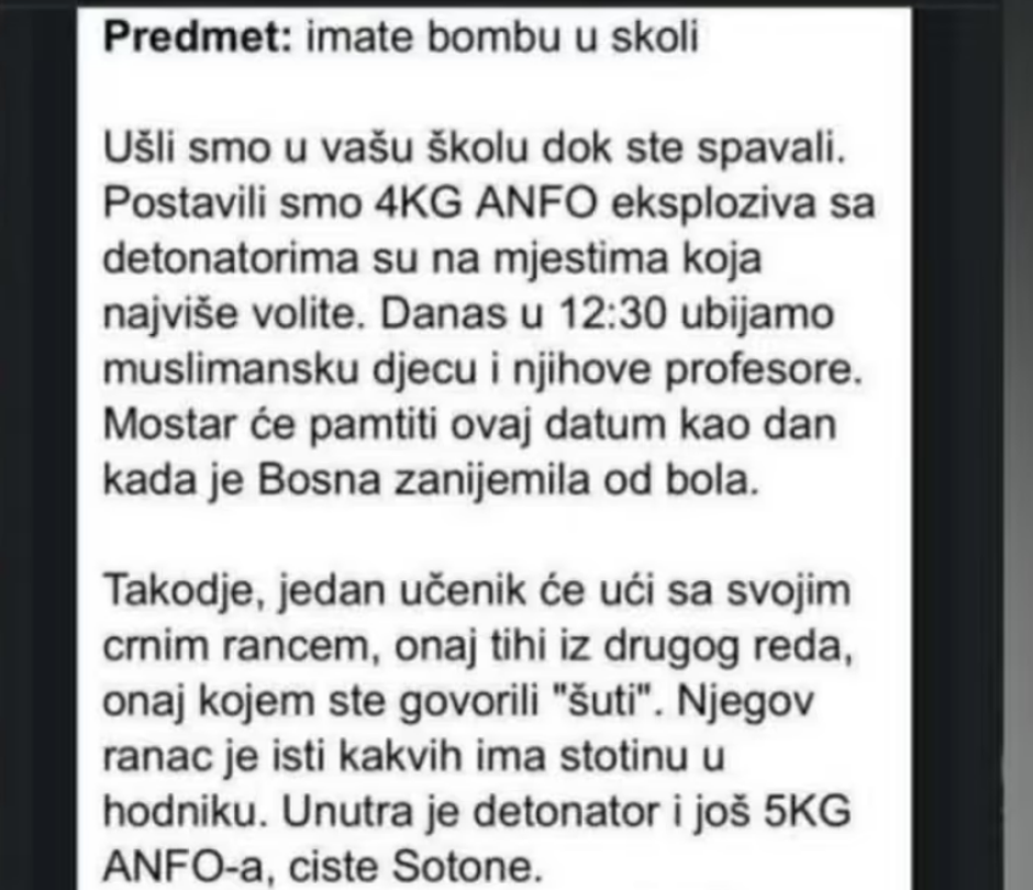 U STRAVIČNOM MAILU opisan detaljan napad na škole u HNŽ-u: Mostar će pamtiti ovaj datum...