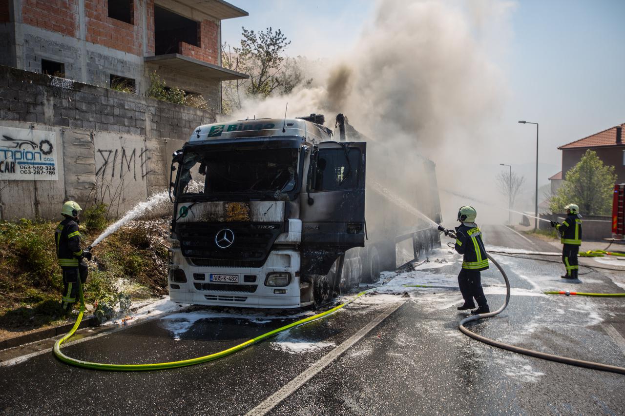 Teretno vozilo zapalilo se oko 11:30 u Mostaru dok je magistralnim putem M-17 prometovalo pored naselja Šehovina.
