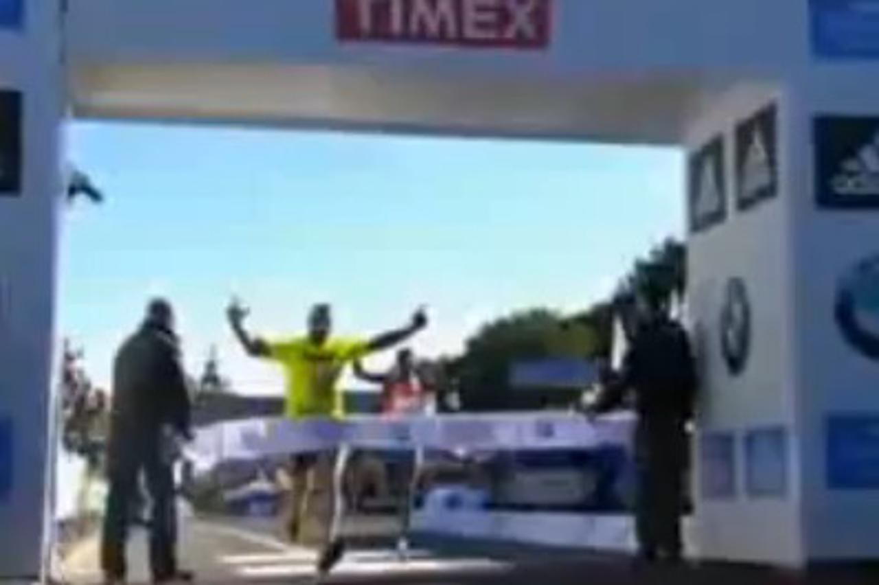 Nevjerojatni 31-godišnji Kenijac Wilson Kipsang u nedjelju je na Berlinskom maratonu postavio novi svjetski rekord 2:03:23, no jedan se bezobrazni gledatelj neukusno nametnuo te mu uništio onaj divni trenutak poresijecanja ciljne vrpce!