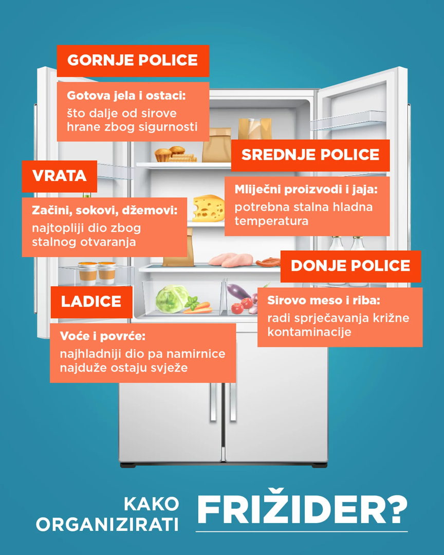 Različiti dijelovi hladnjaka imaju različite temperature, stoga je važno namirnice smjestiti na odgovarajuća mjesta: