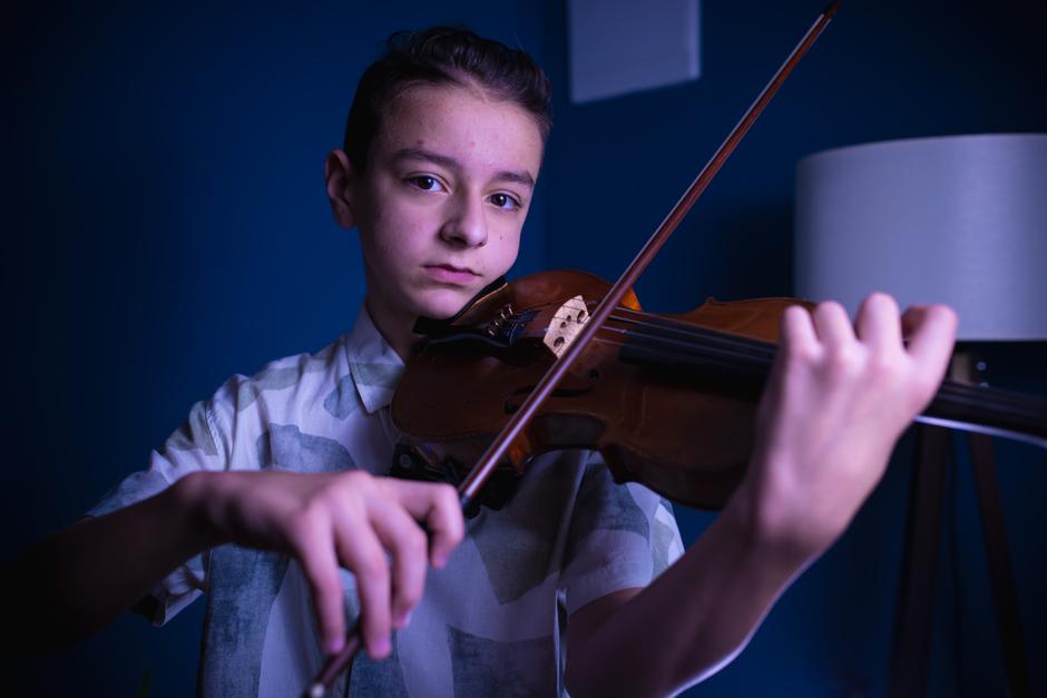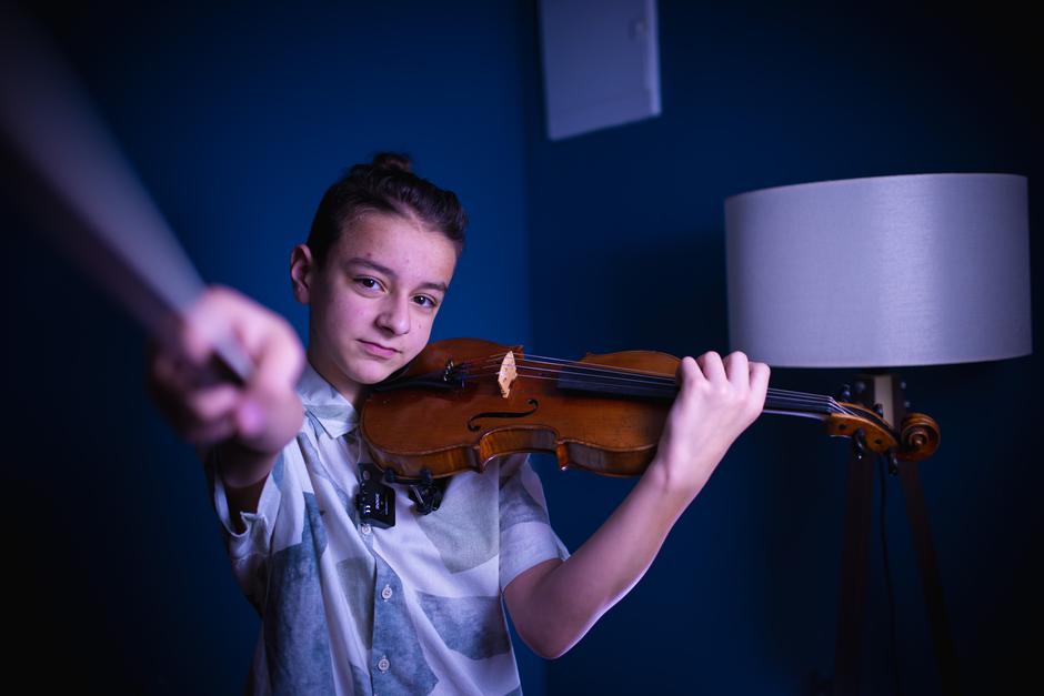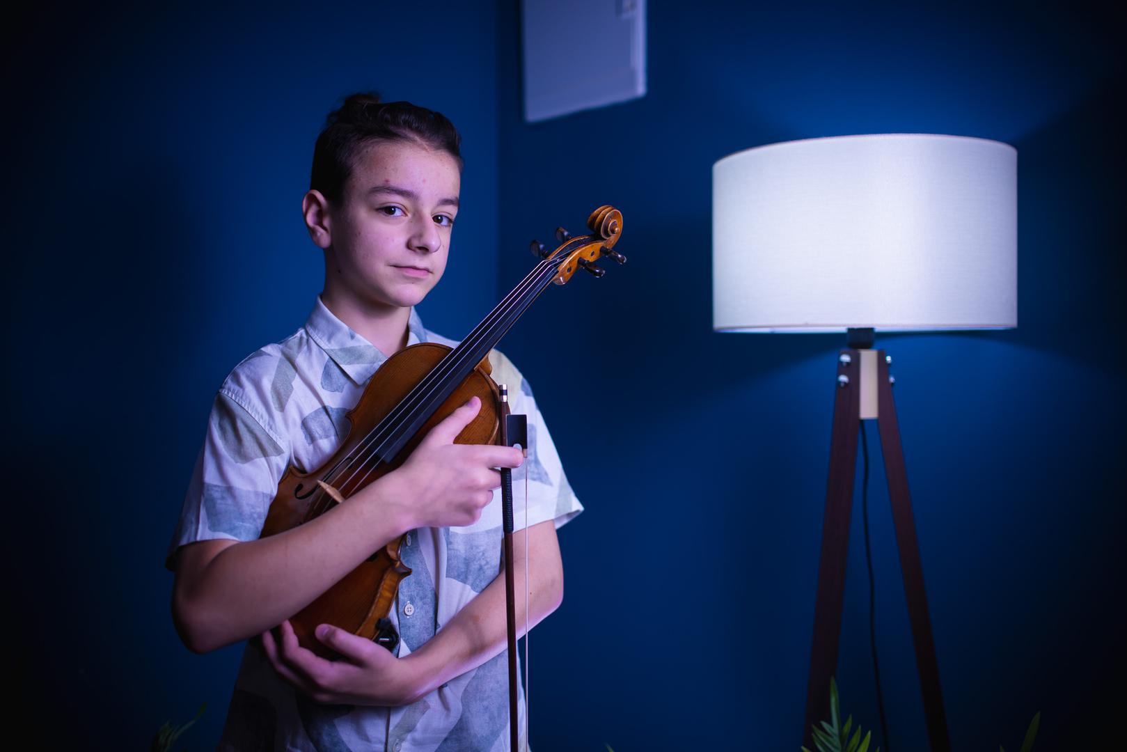 "Sviram violinu šest godina, a odabrao sam taj instrument zbog svoje sestre koja je svirala violinu, pa sam od nje vidio, probao i tako sam počeo. Violinu nije lako svirati, mislim da je to jedan od težih instrumenata. Ako se spremam za neki veliki koncert ili natjecanje onda vježbam barem tri sata dnevno, a inače najmanje dva sata", govori nam simpatični dječak koji će se na prestižnom natjecanju naći rame uz rame s mladim glazbenicima iz Japana, Amerike, Njemačke, Francuske, Kine, Italije, Švicarske...