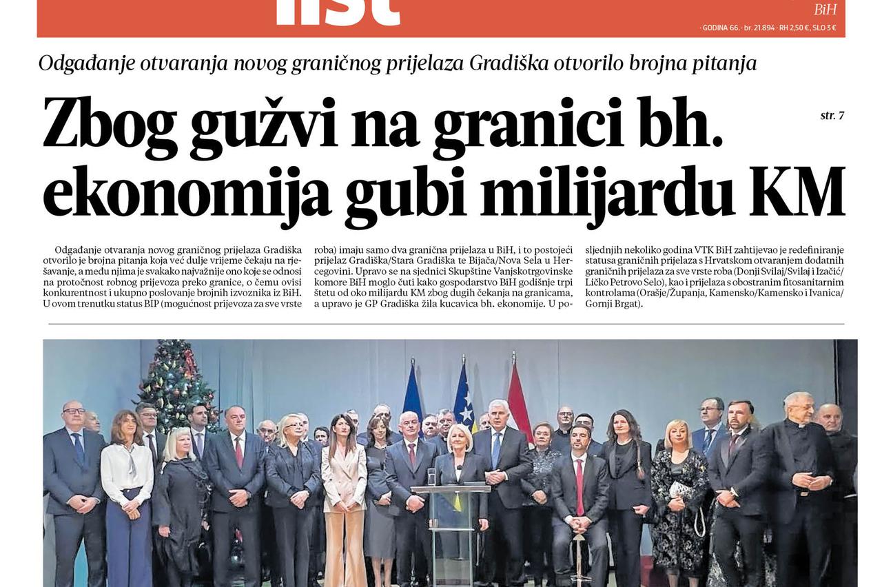 Pročitajte što vam ovoga petka donosi Večernji list BiH