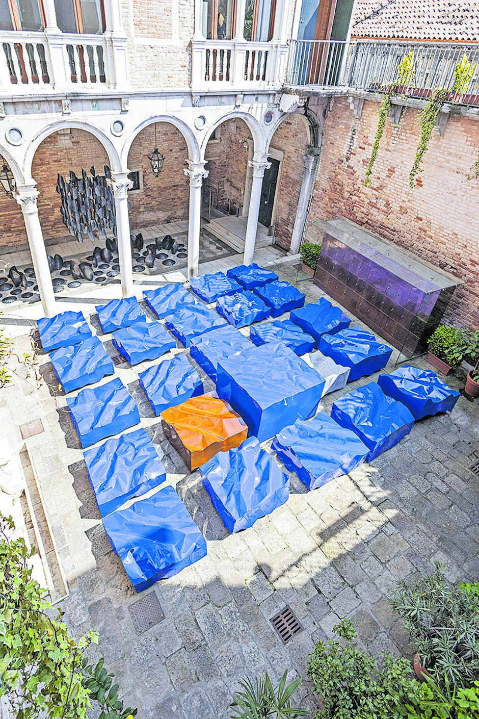 Prije nego što se osvrnemo na sam umjetnički projekt "Mjera mora", važno je kratko se vratiti i na kronologiju nastupa Bosne i Hercegovine na Venecijanskom bijenalu. Svakako ne možemo izostaviti činjenicu da Bosna i Hercegovina već godinama izostaje s raznih međunarodnih kulturnih manifestacija, što je izravan rezultat nesređene financijske, institucionalne i nacionalne strukture, dok druge zemlje, koje nisu s tla Europe, redovito sudjeluju na istim, a Bosna i Hercegovina, koja baštini bogato europsko kulturno nasljeđe, ostaje izvan tog međunarodnog okvira. Ovakva situacija odražava širi problem u kojem smo sami odgovorni za propuštene prilike da na globalnoj sceni predstavimo našu zemlju u područjima kao što su znanost, tehnologija i turizam. Iako su umjetnički projekti iz Bosne i Hercegovine bili predstavljeni na ranijim izdanjima Venecijanskog bijenala, važno je istaknuti kako se nekontinuirano sudjelovanje reflektiralo također negativno jer smo, uz činjenicu da blokiramo sami sebe uslijed kompleksnih razloga, i u "očima Zapada" zasigurno okarakterizirani kao nespremni i nesređeni za prisutnost na takvoj manifestaciji. Od 1993. godine do danas Bosna i Hercegovina predstavila se službeno svega pet puta na Venecijanskom bijenalu (2003., 2013., 2017., 2019. i 2024.). Prethodni nastupi Bosne i Hercegovine na međunarodnoj sceni bili su snažno povezani s propadanjem jugoslavenske industrije i posljedicama rata. To, dakako, jasno odražava naš mentalitet žrtve, stalnu sklonost podčinjavanju i prihvaćanju vanjskih autoriteta koji nastoje održavati fokus na problemima, kao da u Bosni i Hercegovini ne postoji ništa osim tragične prošlosti i tekućih poteškoća. A zapravo, naša zemlja obiluje prirodnim, kulturnim, spomeničkim i umjetničkim ljepotama. I dok nas vanjski svijet često doživljava kroz prizmu postkolonijalnih teorija, prava manjina, migracija i drugih društvenih problema, koji su više politička nego umjetnička pitanja, projekt "Mjera mora" uspio je probiti tu negativnu sliku. Njegova estetska snaga, simbolika, ljepota, poetska izraženost i konkretna materijalnost izazvali su veliki interes, pokazujući da Bosna i Hercegovina ima mnogo više za ponuditi od toga da bude tek predmet sažaljenja i političkog diskursa. Umjetnički projekt "Mjera mora" postavljen je i prezentiran publici u atriju renesansne palače Zorzi na Trgu Sestiere di Castello i ujedno predstavlja jedan od najreprezentativnijih objekata ovog tipa. Palaču je 1480. godine projektirao Mauro Codussi, a nalazi se nekoliko ulica dalje od crkve Santa Maria Formosa koju je također projektirao Codussi. U palači Zorzi se od 2018. godine nalaze uredi UNESCO-a u Veneciji. Sam koncept izložbe iznimno se uklopio u sam ambijent te je kroz iznimno suvremen i moderan umjetnički pristup u sjajnoj korespondenciji s tradicionalnom renesansnom arhitekturom. Sama palača naslanja se na more, na čuvene venecijanske kanale te je u jednom dijelu atrija, koji je na istoj nadmorskoj visini kao i Trg sv. Marka, učestala pojava acua alte - morske plime s kojom su stanovnici Venecije već godinama u suživotu. Kvadratične skulpture, različitih visina također na simboličan način mogu se čitati kao stalna promjena visine mora, kao i razmaci između istih koji nas podsjećaju na venecijanske kanale. Renesansna arhitektura prema suvremenoj skulpturi uspostavlja odnos izrazitog kontrasta, bijeli kamen, arhitektonska plastika i otvoreni prostor jukstaponirani su poliranim kvadratičnim elementima od bojenog aluminija i ovalnim oblicima od kovanog željeza. Time se postiže dojam estetske začudnosti koji je nadrealno lijep. Sam ambijent nudi nam mogućnost da se ova nam umjetnička instalacija može sagledati s više perspektiva gledanja: jedna je s glavnog ulaza, druga iz atrija prema lukovima palače te treća s galerije palače na atrij i skulpture kvadratičnog formata.