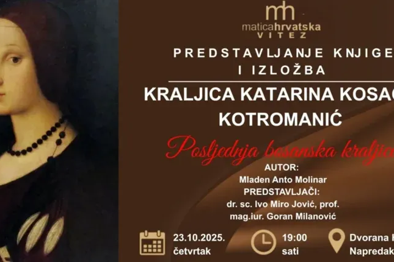 Promocija knjige i izložba pod nazivom „Kraljica Katarina Kosača Kotromanić – posljednja bosanska kraljica“, održat će se u Vitezu u četvrtak, 23. listopada 2025. godine.