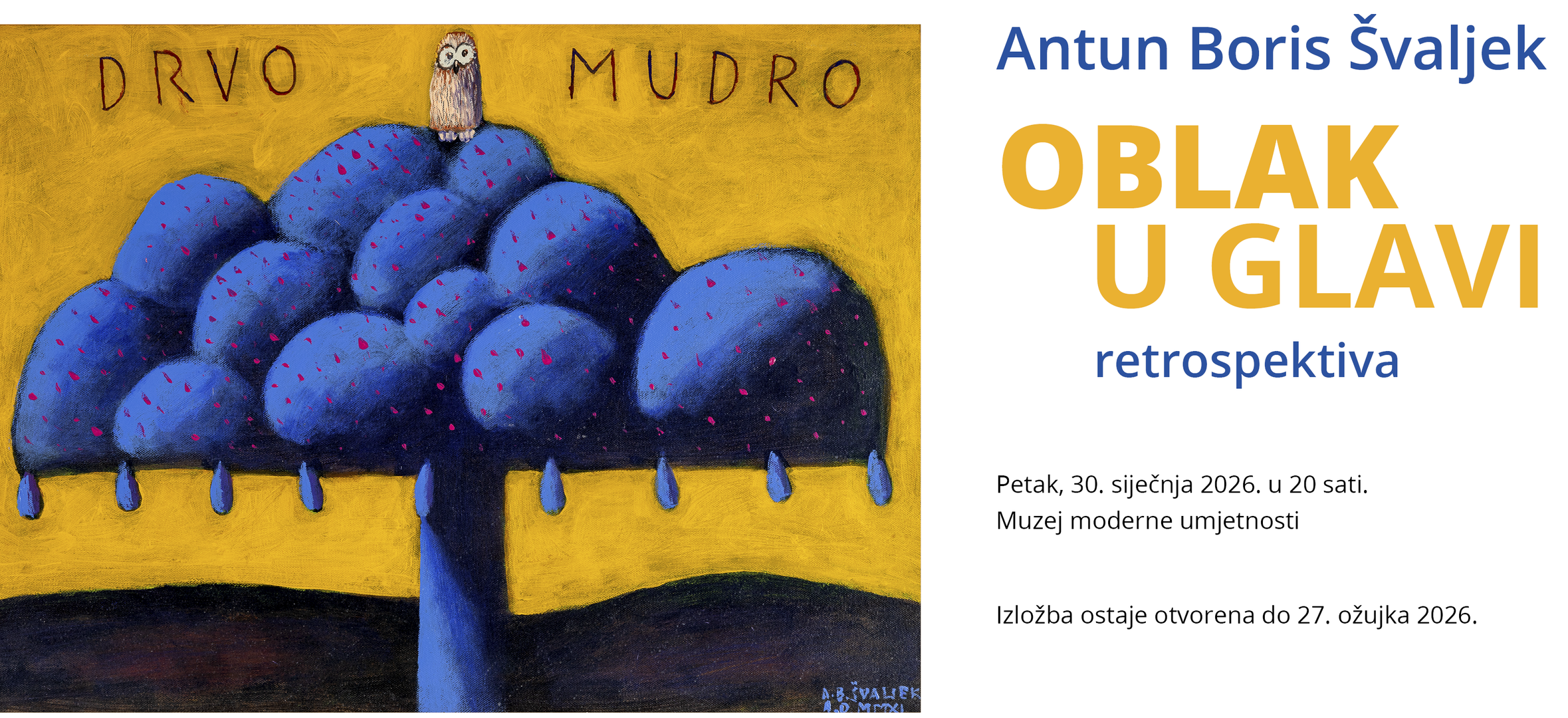 U Muzeju moderne umjetnosti Sveučilišta u Mostaru u petak, 30. siječnja, u 20 sati bit će svečano otvorena velika retrospektivna izložba „Oblak u glavi“, posvećena jednom od najoriginalnijih hrvatskih umjetnika druge polovice 20. stoljeća – Antunu Borisu Švaljeku. Retrospektivu priređuje Muzej moderne umjetnosti u suradnji s Gradskim muzejom Varaždin, Narodnim muzejom Zadar i Hrvatskim društvom likovnih umjetnika Zagreb, a za cjelovit uvid u Švaljekovo stvaralaštvo posuđena su djela iz više hrvatskih muzeja i galerija, kao i iz privatnih zbirki. Autor stručne koncepcije izložbe je ugledni likovni kritičar Milan Bešlić, dok je kustos mostarske izložbe Toni Barać.