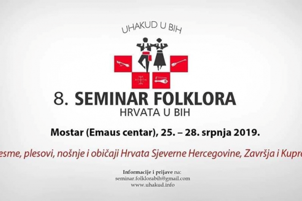 Udruga hrvatskih amaterskih kulturno umjetničkih društava (UHAKUD) u BiH i ove godine organizira Seminar folklora Hrvata u BiH, koji će biti održan od 25. do 28. srpnja u Emaus centru u Potocima kod Mostara.
