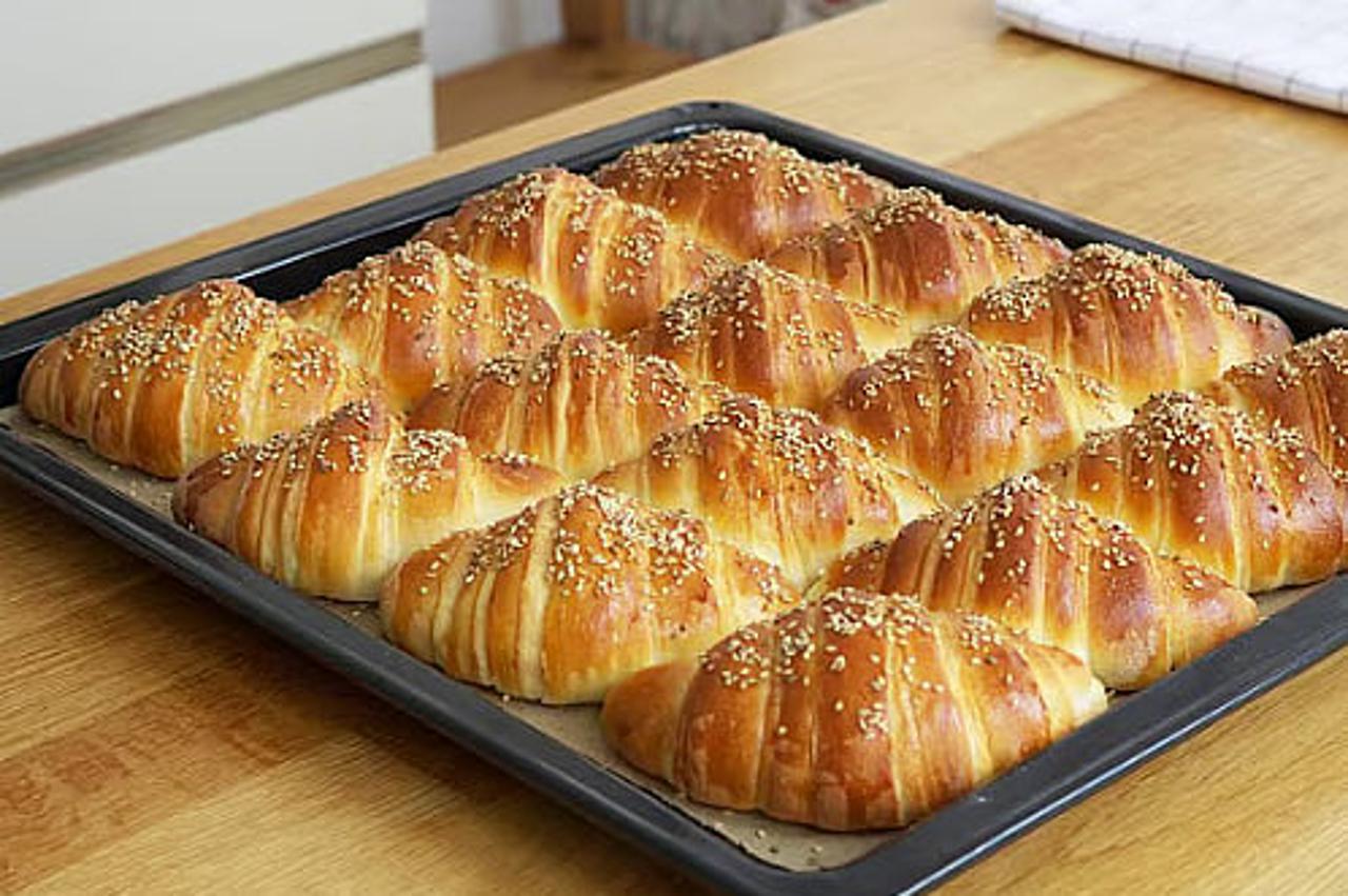 • Nakon pola sata maknuti krpu, premazati ih žumanjkom i posuti sezamom.