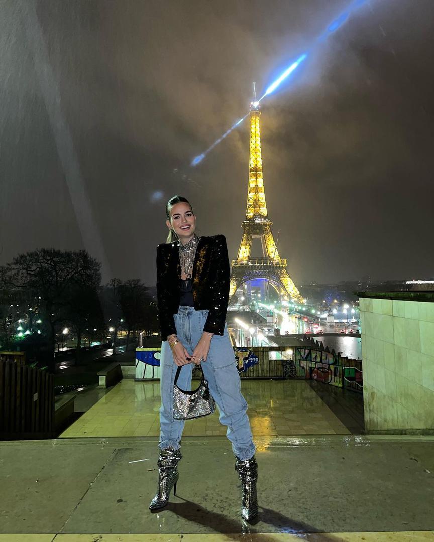 Adriana je pozirala u trapericama i jednostavnoj bluzi koje je kombinirala s upečatljivim šljokičastim detaljima- čizmama, sakoom i blještavim nakitom, a najviše pažnje ukrala je Pradina torbica koju obožavaju mnoge poznate dame među kojima su sestre Kardashian, Bella Hadid i modna blogerica Tamara Kalinić.