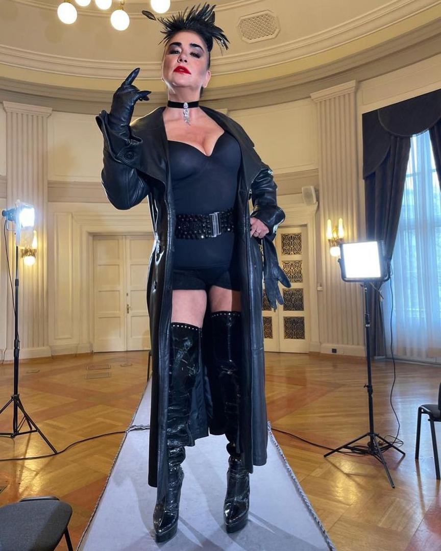 Pjevačica Alka Vuica (60) oduševila je obožavatelje najnovijim fotografijama koje je podijelila na društvenim mrežama. Pozirala je uskom, kratkom, crnom kombinezonu s crnim remenom, visokim kožnim čizmama s platformom i kaputu, a cijelu kombinaciju upotpunila je rukavicama, ogrlicom i upečatljivom frizurom i make-upom.