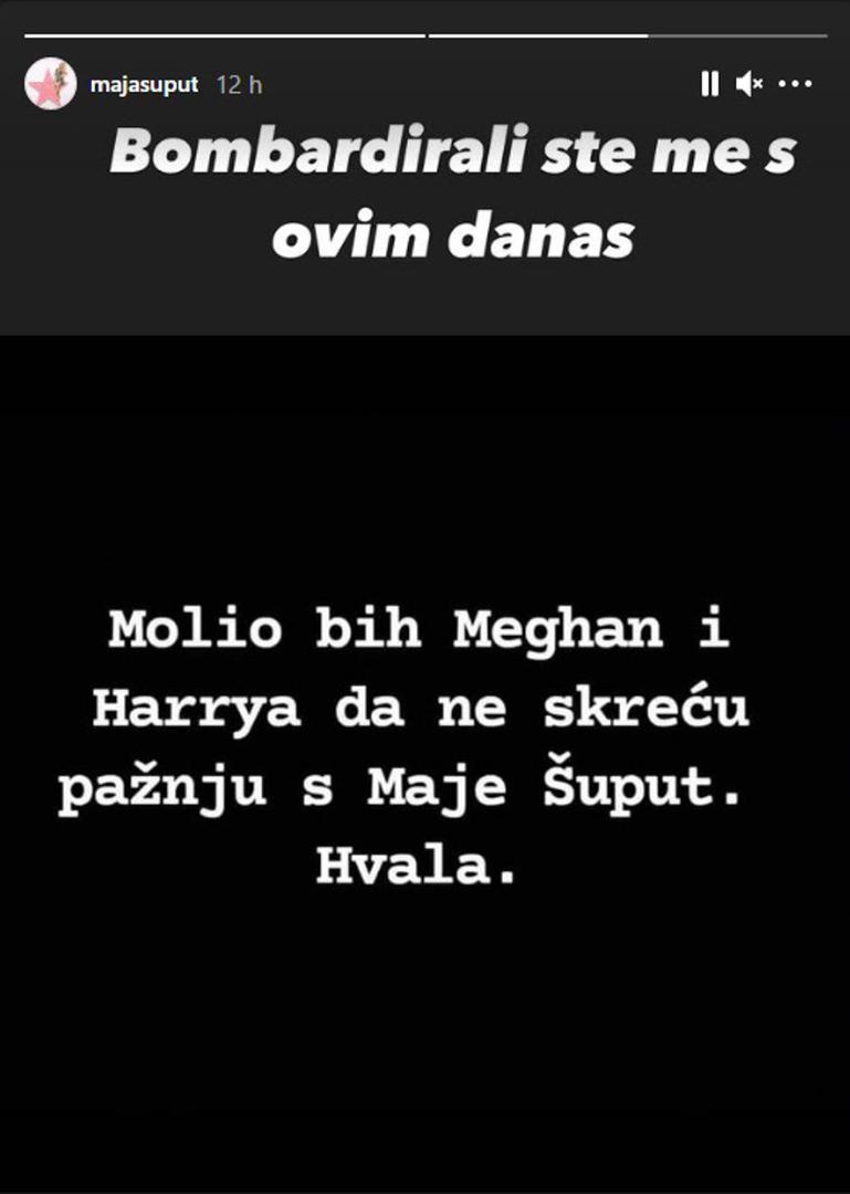 Ovog jutra našalila se na račun bombastičnog intervjua Meghan i Harrya. - Molio bih Meghan i Harryja da ne skreću pažnju s Maje Šuput. Hvala - glasi šala koja je nastala nakon intervjua Harry i Meghan kod Oprah Winfrey. Intervju je i u Hrvatskoj bio iznimno medijski popraćen, tako da se nekoliko dana nije pisalo o Maji Šuput i njenoj trudnoći.