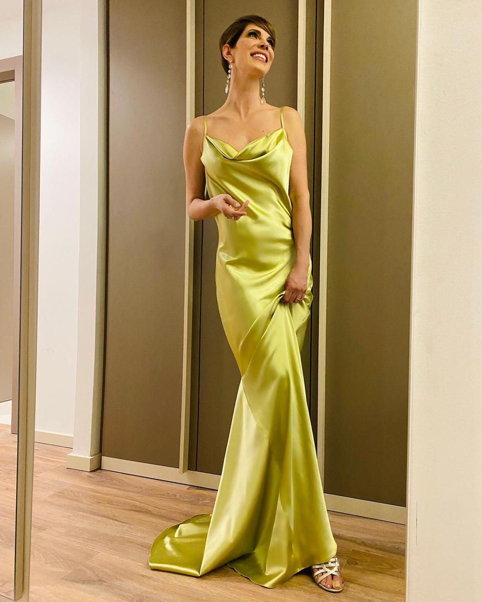 Glumica Bojana Gregorić Vejzović (50) na svojem se Instagram profilu pohvalila fotografijom u dugoj svilenoj haljini boje limete, a pozirala je nasmiješena od uha do uha.