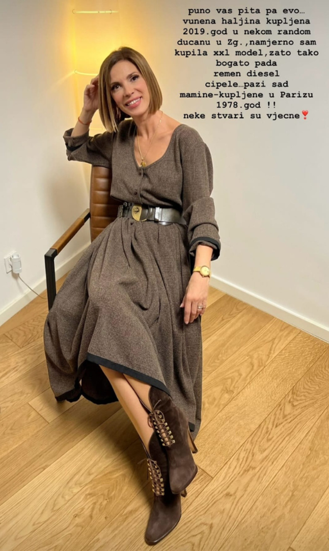 Upasala ih je uz smeđu dugačku oversized haljinu koju je kupila u nekom zagrebačkom dućanu. Dakako, od pratitelja je dobila brojne komplimente za izgled.