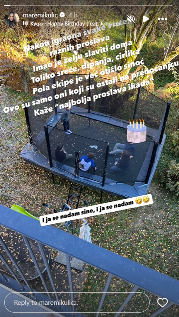 Glumica Marijana Mikulić često se javlja na društvenim mrežama te pokazuje privatne trenutke. Njezina obitelj dobro je poznata njezinim pratiteljima, a ovoga puta otkrila je kako su proslavili veliki dan. Marijana je otkrila da je njezin sin slavio rođendan, a onda pokazala kako je to izgledalo. "Nakon igraona svake vrste/ raznih proslava, imao je želju slaviti doma. Toliko sreće, đipanja, cirlika... Pola ekipe je već otišlo sinoć, ovo su samo oni koji su ostali na prenoćanjcu. Kaže 'najbolja proslava ikada'", opisala je pored fotografije trampolina u vrtu, a potom dodala: "I ja se nadam sine, i ja se nadam".