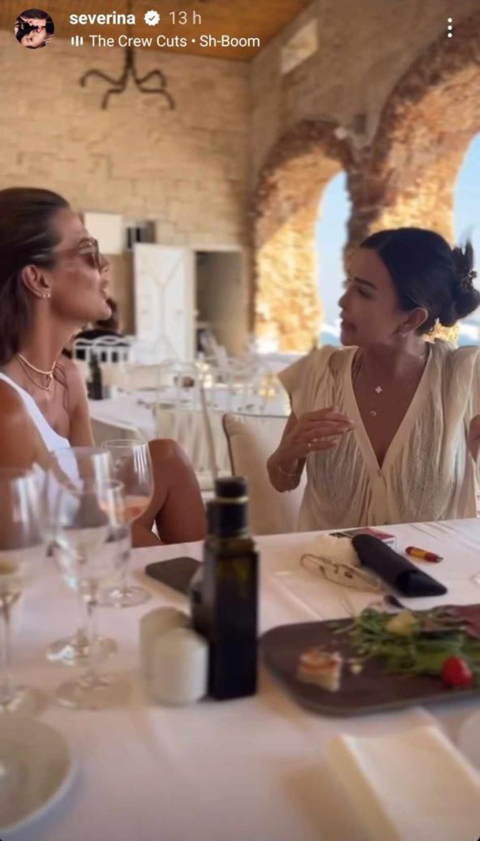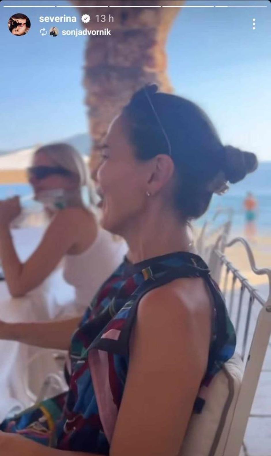 Nakon toga atraktivna glazbenica je objavila i video iz restorana s pogledom na more, a gdje je bila na ručku s prijateljicama. Naime, družila se s poduzetnicom Ivom Radić, fotografkinjom Sonjom Dvornik te svojom vjenčanom kumom Andreom Čermak, inače suprugom Hrvoja Čermaka, sina umirovljenog generala Ivana Čermaka. Osim u odličnoj mediteranskoj hrani, dame su uživale i u druženju te su izgledale kao da se odlično provode. Sonja Dvornik je u svojim pričama na Instagramu objavila i fotografiju na kojoj ona i Severina u večernjim satima poziraju sa srebrnim dubrovačkim vaterpolistima.
