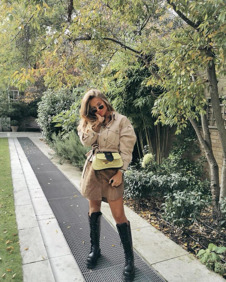 Trend velikih čizama isfurala je i lijepa Izabel Kovačić kombinirajući ih s kratkom bež košulja-haljinom i safari jaknom slične nijanse, a Pradinom torbicom osvježila je kompletan outfit.