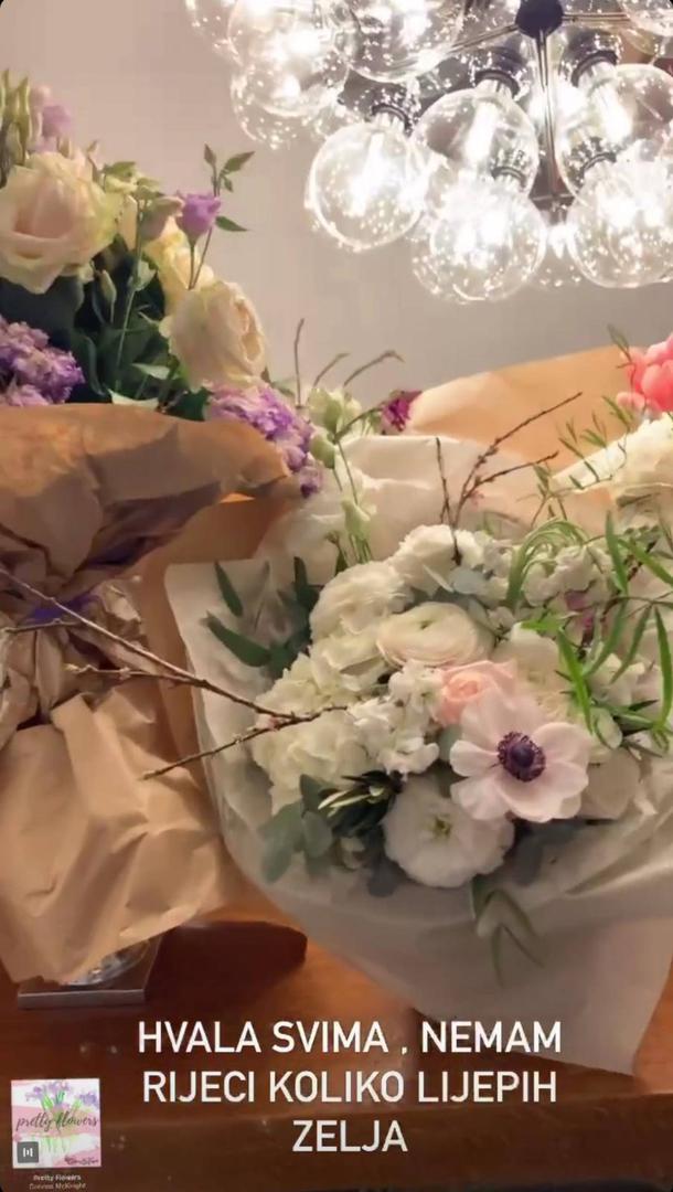 Čestitke ne prestaju stizati sa svih strana pa se Maja tako pohvalila punim stolom cvijeća koje je dobila.