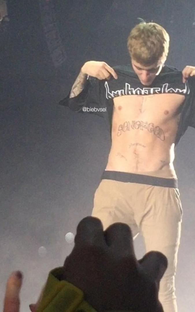Naime, mlada pop zvijezda je za talijanskog koncerta prošlog vikenda u jednom trenutku podignu majicu i svijetu pokazao svoju najnoviju tetovažu - natpis 'Sin Božji' koji je pjevač tetovirao ispod prsa.