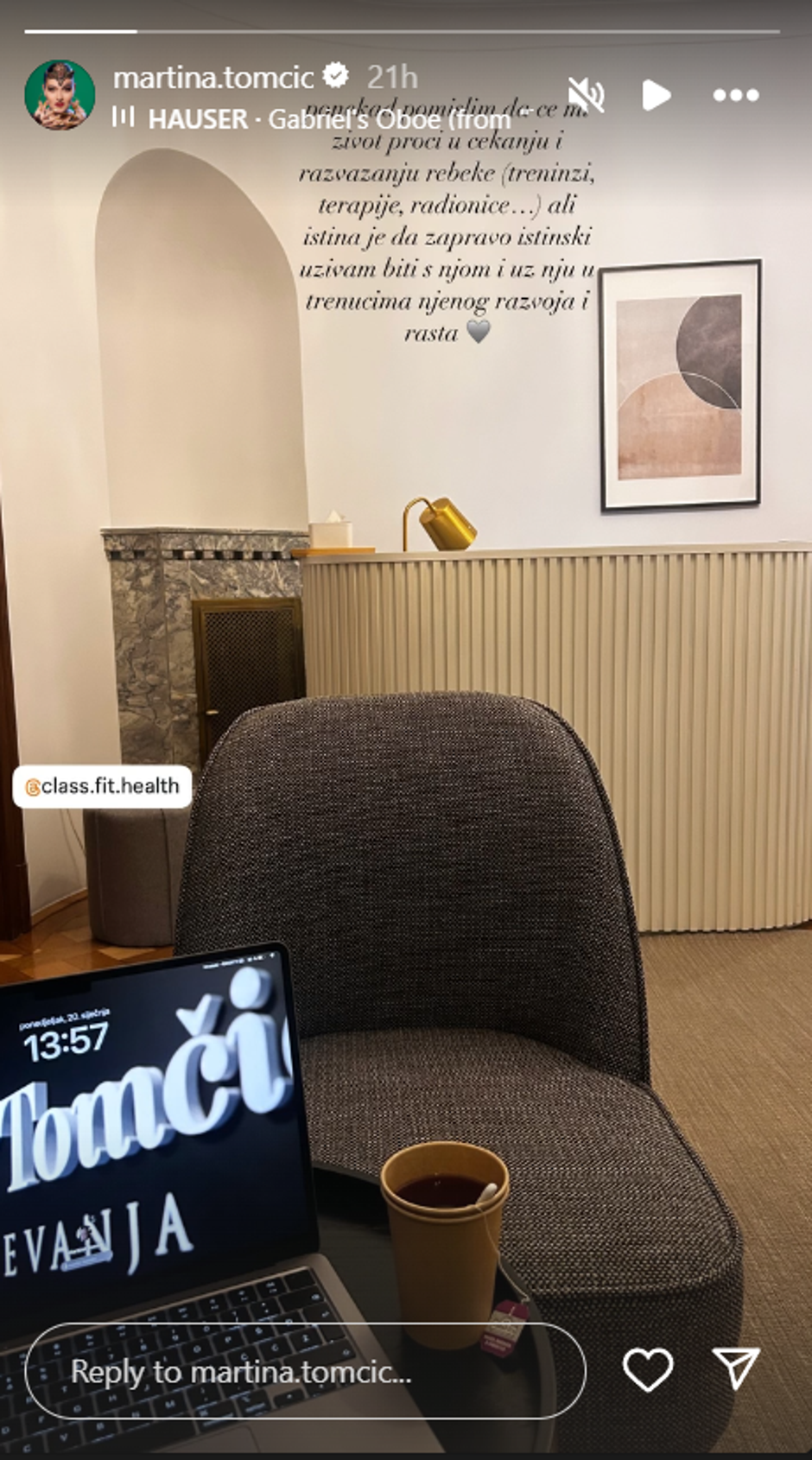 Martina Tomčić, poznata operna pjevačica i članica žirija Supertalenta, podijelila je emotivan trenutak sa svojim pratiteljima na Instagramu, što je mnoge iznenadilo. Naime, objavila je fotografiju čekaonice i laptopa pored šalice čaja, uz objašnjenje koga čeka: