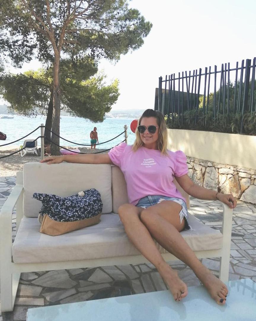 "Hello Orebić", napisala je Minea pored fotografije na kojoj sjedi u kafiću odjevena u kratki traper i kratku rozu majicu.