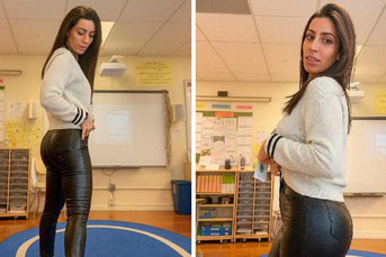 A teacher posted a video showing herself wearing fitted faux-leather pants and a cashmere sweater in her classroom, asking whether her outfit broke the school’s dress code — a question that quickly went viral and ignited debate about what’s considered professional attire for… pic.twitter.com/9QnLmD7WHp
