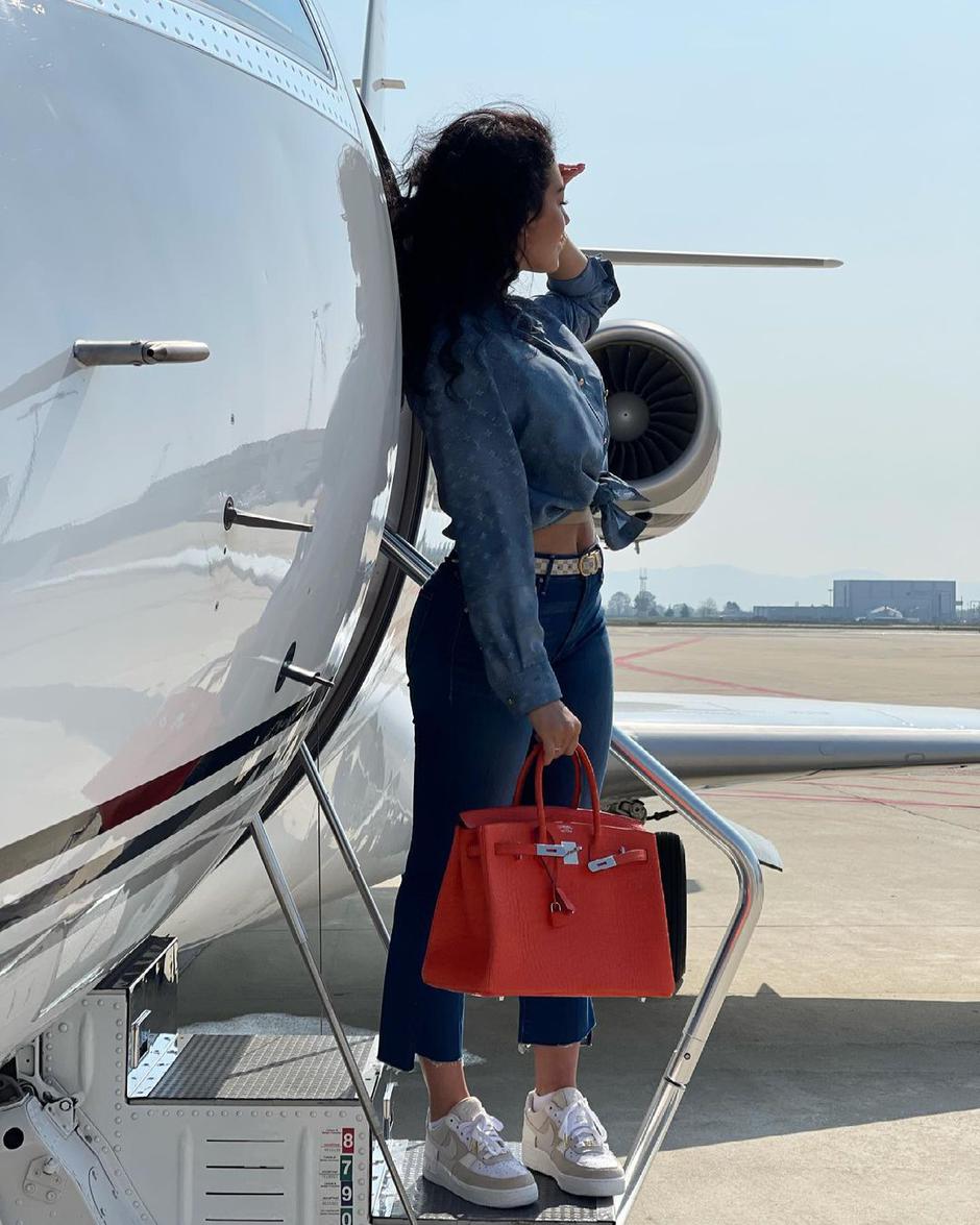 Na toj fotografiji slavni portugalski nogometaš i zanosna crnka udobno su se smjestili u njegovom luksuznom privatnom zrakoplovu, a modnim znalcima nije promaknula torbica kojom se Georgina pohvalila, prenosi Tportal.hr.