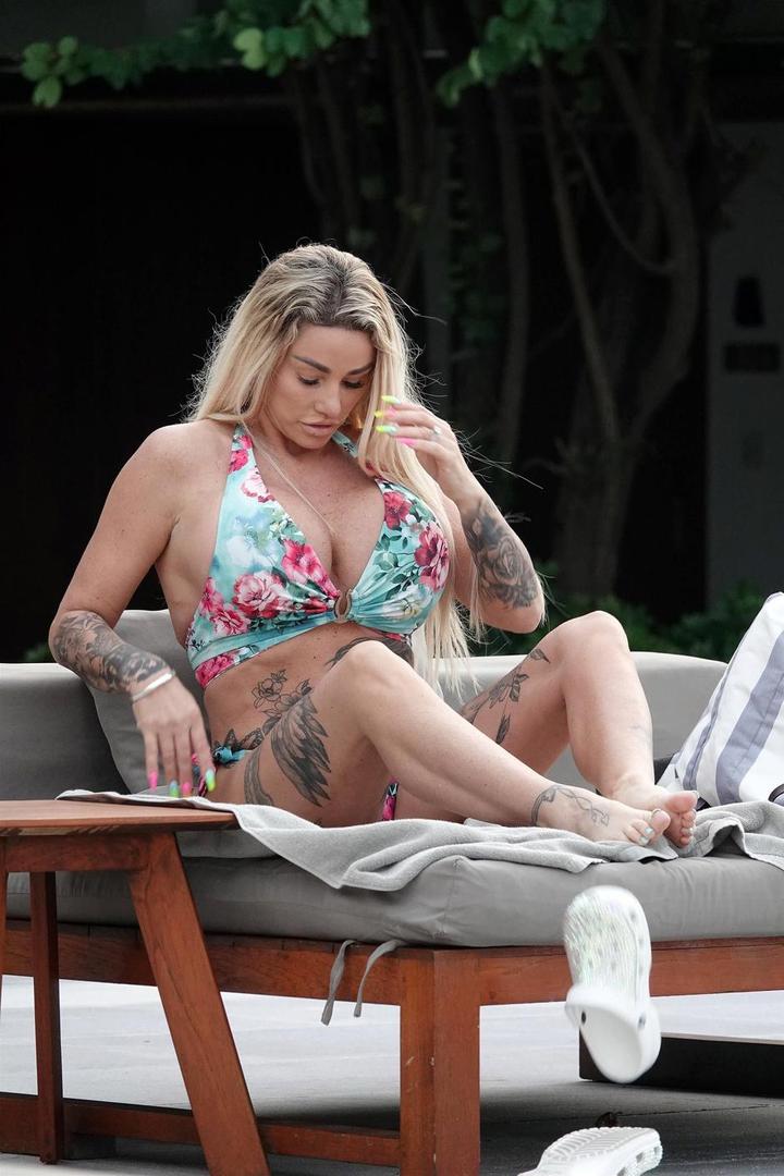 Katie je odabrala dvodijelni kupaći kostim sa cvjetnim uzorkom, a gornji dio bio je dovoljno velik kako bi podržao njeno masivno poprsje.