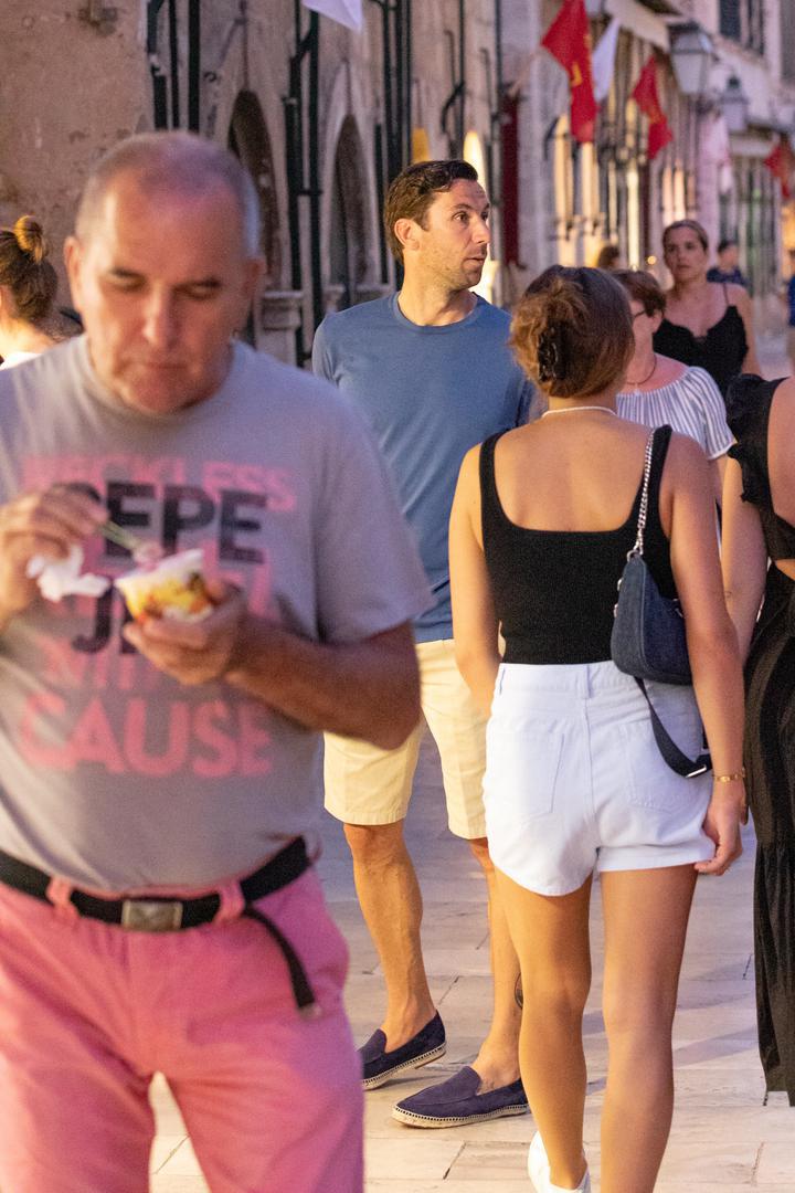 Bivši kapetan hrvatske nogometne reprezentacije Darijo Srna (39) strpljivo je čekao dok je njegova supruga Mirela Forić Srna (39) razgledavala izloge u Dubrovniku.