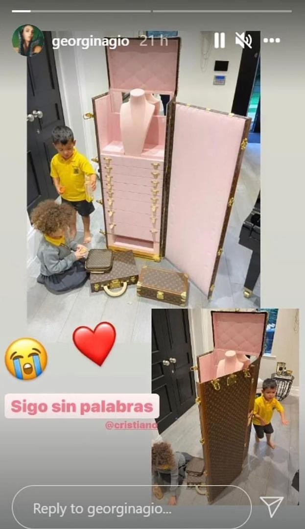 Djevojka Cristiana Ronalda (36), Georgina Rodriguez (27) na društvenim mrežama se pohvalila skupocjenim poklonom koji je dobila od svog odabranika. Ronaldo ju je iznenadio dizajnerskim kovčegom za nakit poznatog francuskog brenda Louis Vuitton vrijednim 150 tisuća funti.