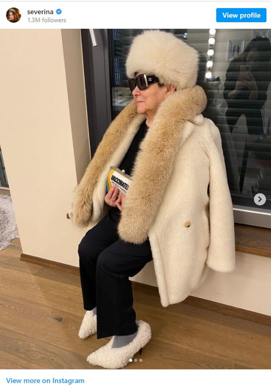 Pjevačica Severina (49) na svojem je Instagram profilu podijelila nekoliko fotografija na kojoj njezina mama Ana pozira u čupavim cipelama kojima je pjevačica prije nekoliko dana oduševila svoje pratitelje. "Ana Karenjina je spremna za druženje", našalila se pjevačica u opisu objave. Njezina mama te je štikle uskladila s krznenim kaputom i šubarom u istoj boji, a kombinaciji je dodala i sunčane naočale te torbicu.