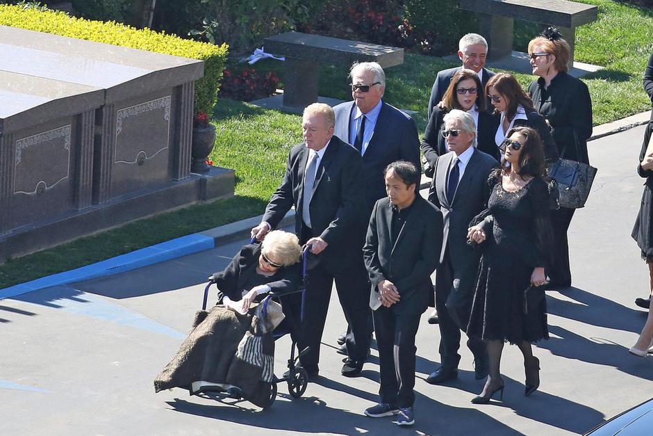 Uz lijes su koračali i Michaelovi sin Cameron i Dylan Michael, a posebno je neutješna bila Kirkova supruga Anne Buydens (100) s kojom je proveo više od 65 zajedničkih godina. Anne je tijekom ispraćaja klonula u kolicima dok su joj podršku pružali Michael i Catherine koji su tugu krili skrivajući se iza sunčanih naočala.