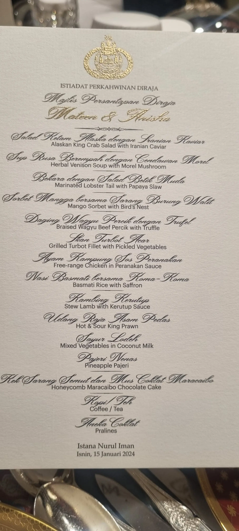 - Bogatstvo sultana vladara Bruneja je nestvarno, mjeri se desetcima milijardi dolara, samo palača u kojoj žive ima 1700 soba i garažu sa 7000 automobila a takvo je bilo i vjenčanje njegovog sina. Raskoš na svakom koraku, a pažnja se posvećivala svakom detalju. Od dolaska u zračnu luku sve je bilo organizirano. Granicu sam prošao bez kontrole, kao da sam premijer, dočekao nas je osobni vozač s Cadillacom i on nam je bio na raspolaganju za vrijeme boravka na Brunejima 0-24. Odmah smo dobili raspored događanja s dress codeom za svaku priliku.