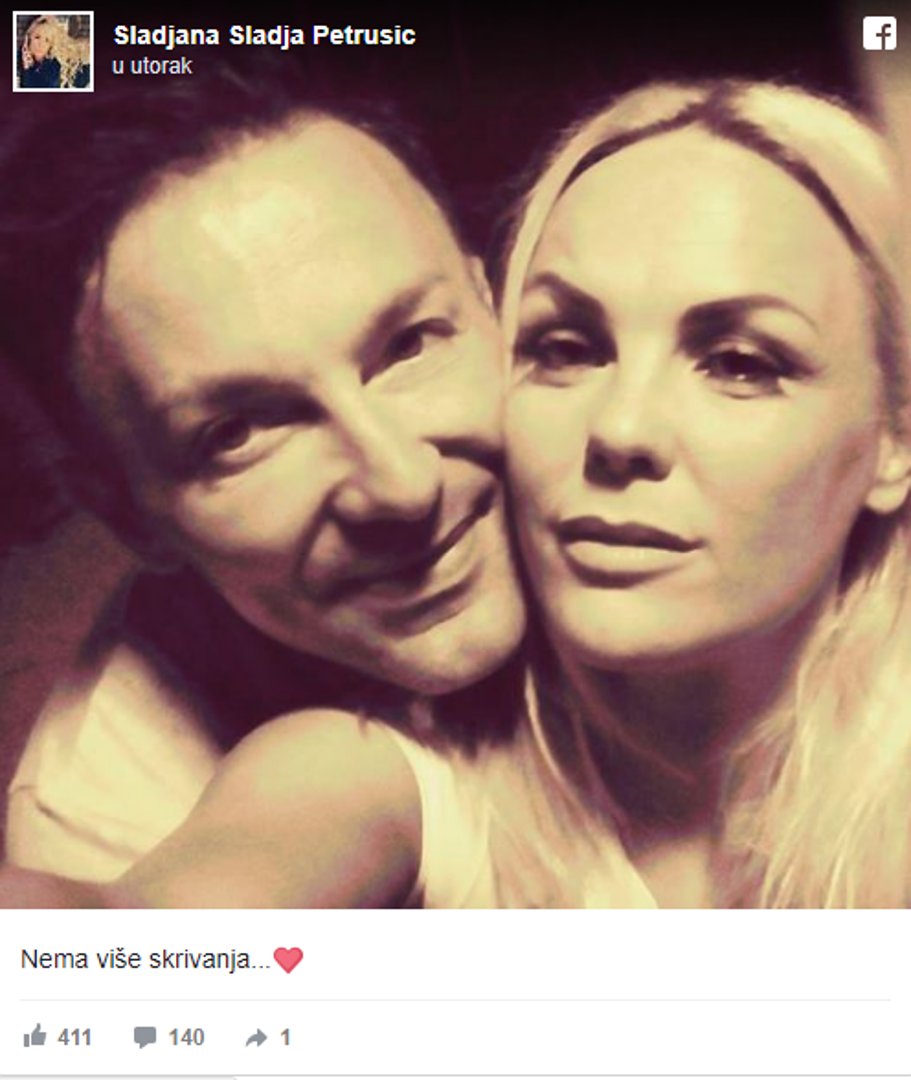Okušala se i kao pjevačica, a bila je glasnogovornica Gospodarske stranke u gradskoj skupštini u Zagrebu. O njenom ljubavnom životu nije se puno znalo, a jučer je Slađa na Facebooku sama otkrila koga to ljubi. Objavila je fotografiju na kojoj je u društvu Petra Vlahova, poznatog voditelja s HRT-a i napisala je kako više nema skrivanja.