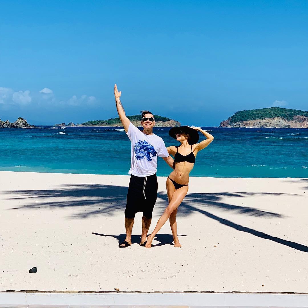 S tirkiznim morem u pozadini, par je zagrljen pozirao na pješčanoj plaži, a dok Robbie nije uspio još skinuti niti majicu, niti hlače, Ayda se našla u punoj spremi za plažu.