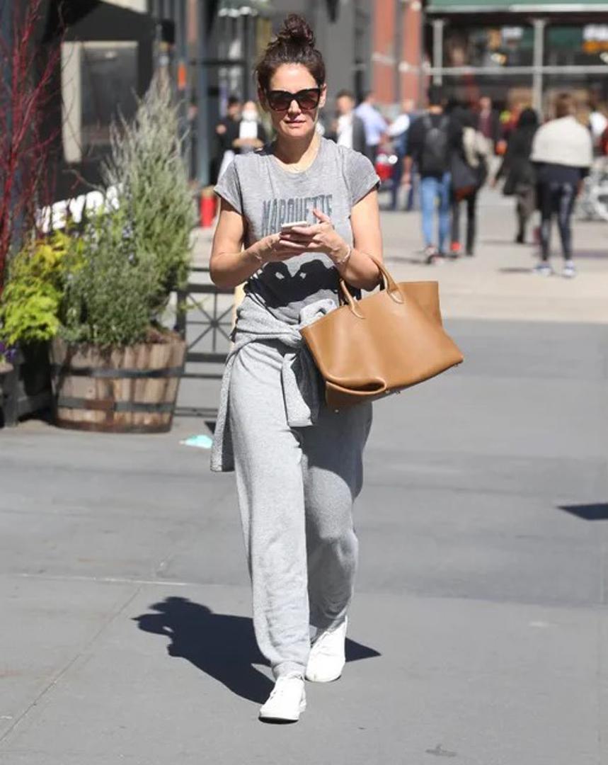 Velika ljubiteljica ležernih outfita u posljednje vrijeme je i Katie Holmes - još je prošle godine nagovijestila trend pletenih topova i kardigana pa je takav komplet iz Zare postao apsolutni must have. Nedavno je isfurala donji dio trenirke iz Manga u kombinaciji sa sakoom i pokazala kako su casual komadi dobrodošli u ormaru ove jeseni, a u rujnu je odabrala sivu trenirku za svadkodnevne obveze po New Yorku.