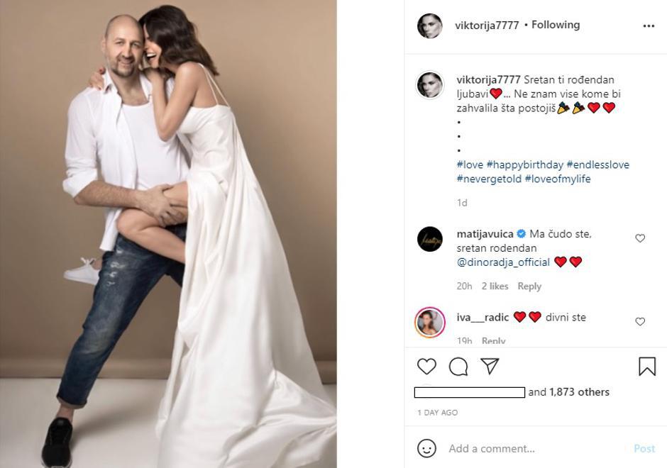 - Sretan ti rođendan ljubavi... Ne znam više kome bi zahvalila šta postojiš - napisala je Viktorija u opisu fotografije na kojoj pozira sa suprugom. Objava je ganula njezine brojne pratitelje, a ispod fotografije zaredale su se čestitke, ali i komentari na račun izgleda sretnih supružnika.