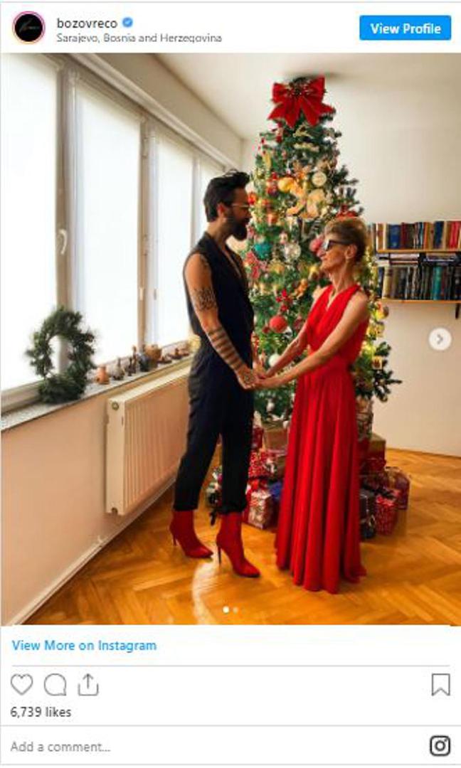 "Majčica je tu i njena malena ruka u mojoj ruci, obukla je moju divnu crvenu haljinu sa koncerta i cijeli dan sam je mazio, tepao joj i iskazivao najdivnije riječi, ja sam njena snaga, ona je moja i ta neraskidiva nit ljubavi je naša najjača iskra hrabrosti koju možemo imati... Saznali smo skoro da ima rak i sada se borimo, skupa i neustrašivo kao i do sada sa svime i znam da ćemo i tog 'zlikovca' pobijediti, naša ljubav će ga otjerati što dalje, život takav kakav jeste donosi i teške i radosne trenutke i dok je ljubavi bit će još i života i radosti, hoću da samo vjerujem u to, da će biti dobro i još dugo godina me činiti sretnim, srno moja nisi sama, uvijek sam tu, tvoje šareno lane (kako ti znaš reći zbog mojih tetovaža) je tu uz tebe da te zaštiti!" stoji u objavi uz fotografiju na kojoj se Božo i majka drže za ruke, a ona je odjevena u njegovu haljinu koju je nosio na jednom koncertu.